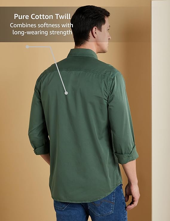 Casual Washed Cotton Twill Shirt (Regular Fit)